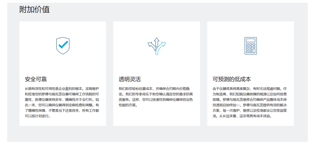 我们希望帮您控制成本。正因如此,我们多年来一直保持原价。我们的产品具有无可比拟的可靠性。但是,即使是最出色的仪器,也会随着时间推移而性能下降,需要进行调整或维修。当仪器出现问题时,我们的防护理念可让您不会因额外的维修成本而困扰。您将真正地长久受益。您只需要投入少量资金,即可享受制造商提供的服务保障,让自己高枕无忧。为确保您尽可能长时间地充分使用仪器的功能并确保精确性,我们提供一系列满足您的特定需求的定制化服务。我们将始终提供完善防护。选择适合您的服务组合。